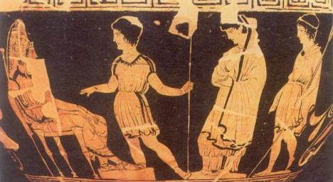 (vase, détail, IVème siècle av. J.-C., British Museum, Londres)